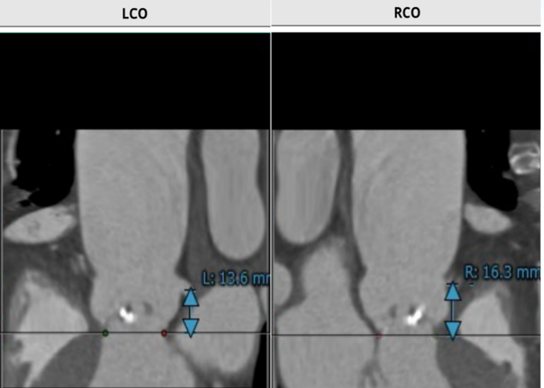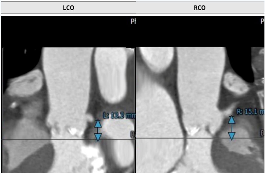 冠脉开口高度大于13mm,未有瓣叶遮挡征象