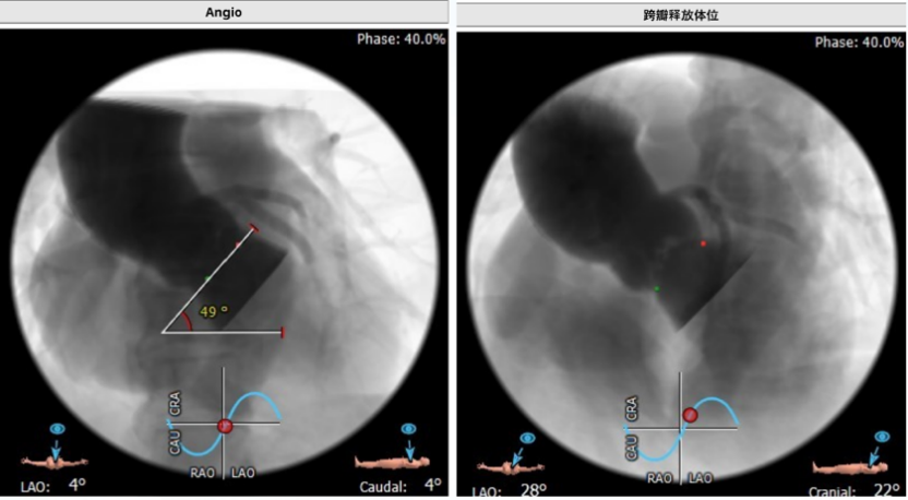 顺利跨瓣后,选取22mm球囊快速起搏预扩。腰征不明显,轻微反流,考虑按照既定策略植入VitaFlow TAV 24型号瓣膜。