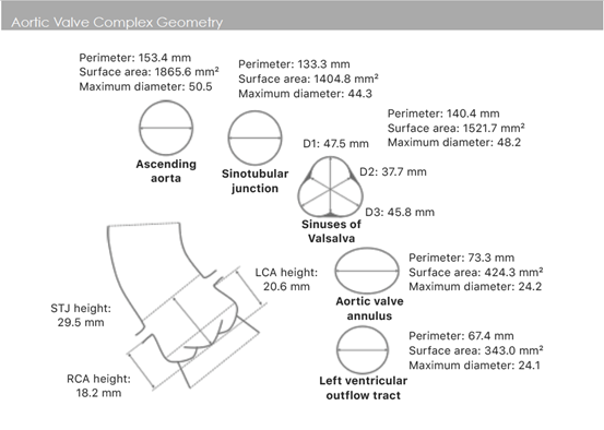 主动脉瓣二瓣化畸形重度钙化并重度狭窄(钙化积分达1368)、升主动脉扩张;平均跨瓣压差为52mmHg;左室舒张末直径41 mm;EF 51%。