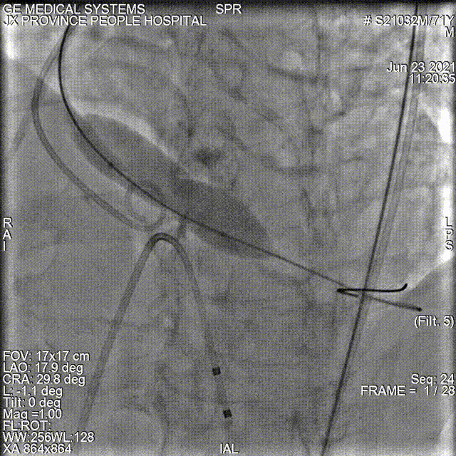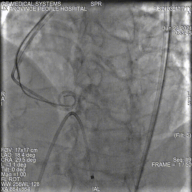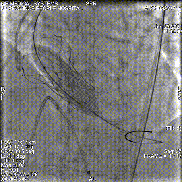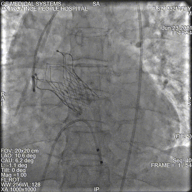2021年6月23日,江西省心血管病医院洪浪院长带领团队完成一例高难度Type0型二叶式主动脉瓣重度狭窄的TAVR操作。该患者为左室腔较小,术前无返流,循环崩溃风险高,极重度钙化,且有一狭长钙化延升至流出道,升主又有增宽,无疑增加了此次手术的操作难度和风险。