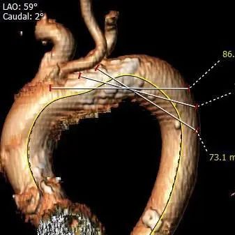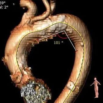 瓦氏窦、窦管交界及升主动脉整体内径较小;左右交界及左冠窦上方升主动脉壁有一长条型严重钙化,延近小弯侧延申至升主动脉。