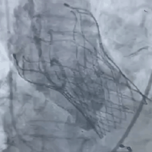 术后,心外科张海波主任总结 “相比传统开放手术,经股动脉微创主动脉瓣置入(TAVR)无需开胸及体外循环,失血量较小,麻醉时间更短,创伤小、恢复快;该患者病情较重,合并冠脉高风险,又是罕见的四叶瓣,结合术前评估,选择VitaFlow30#瓣膜,考虑主动脉瓣钙化不重,又是关闭不全的四叶瓣,瓣膜锚定难度大,精准定位释放瓣膜极为关键。”
