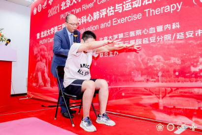 其中,徐顺霖教授讲解“心肺评估与呼吸训练”课程时,为方便学员深入理解,采用真人模特的形式,在现场标准、清晰的演绎了训练步骤,活泼新颖又不乏双向互动,带领北京大学第三医院线下分会场的学员们上了一场意料之外的“体育课”。