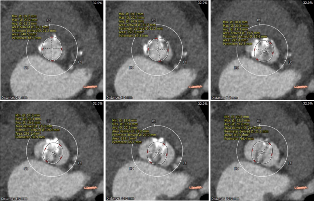 左冠瓣瓣叶长度偏长,综合瓦氏窦内径等因素考虑,左冠存在遮挡风险。 入路血管多处钙化,术中存在入路血管并发症可能。