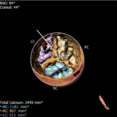 ①患者左、右冠状动脉内存在连续钙化灶,瓣叶相对冗长,存在冠脉阻塞风险,须制定冠脉保护策略;