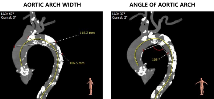 ③患者主动脉弓距可,主动脉弓夹角可,降主动脉及主动脉弓多发钙化,过弓手法应尽量轻柔,避免引起血管损伤;