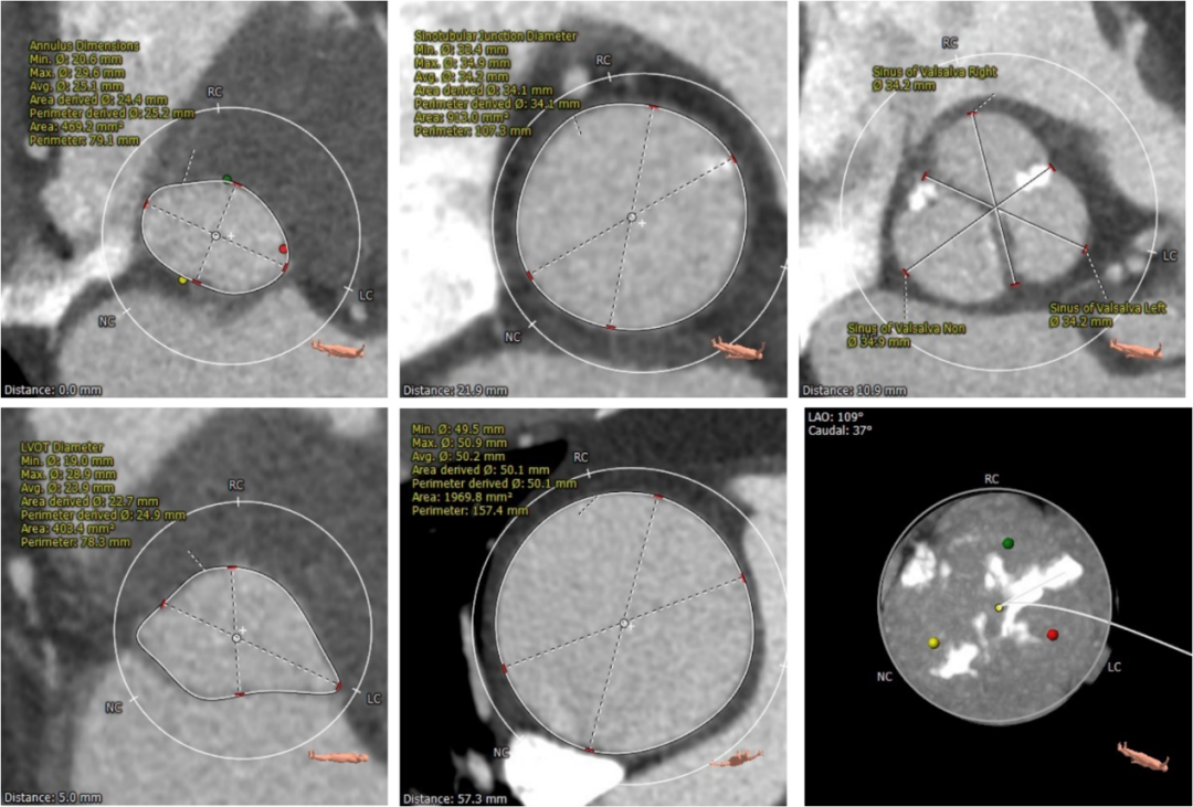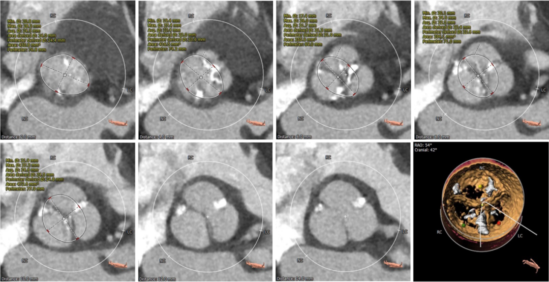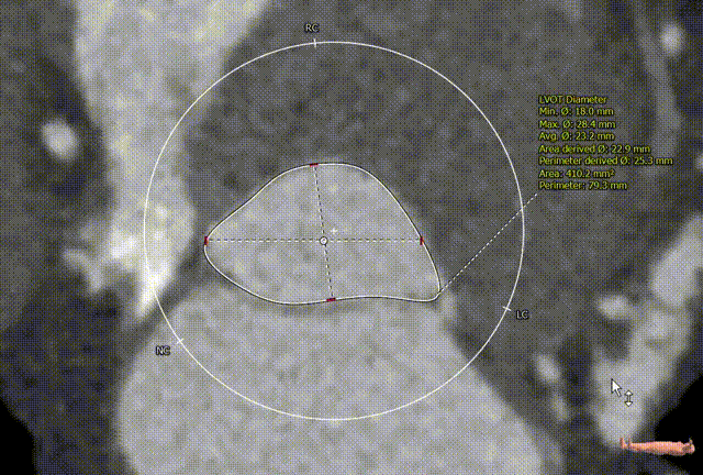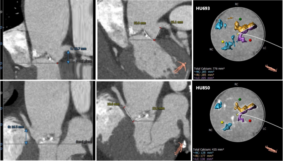 左右冠高度尚可,左冠瓣瓣叶长度偏长,综合瓦氏窦内径等因素考虑,冠脉遮挡风险小。