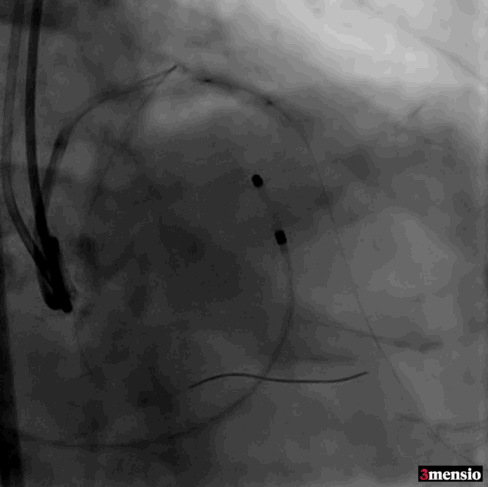 唐熠达教授团队对病例进行多学科综合分析评估决定行一站式PCI+TAVI手术,结合患者91岁高龄,主动脉根部结构及双侧劲动脉粥样硬化斑块形成,脑动脉硬化情况采用20mm球囊预扩,拟植入VenusA-Valve L26瓣膜。