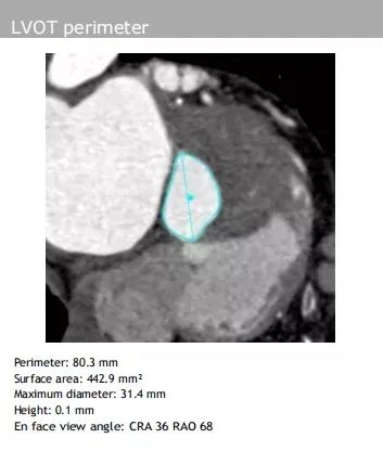 左室流出道:最大直径25.5 mm、周长80.3 mm