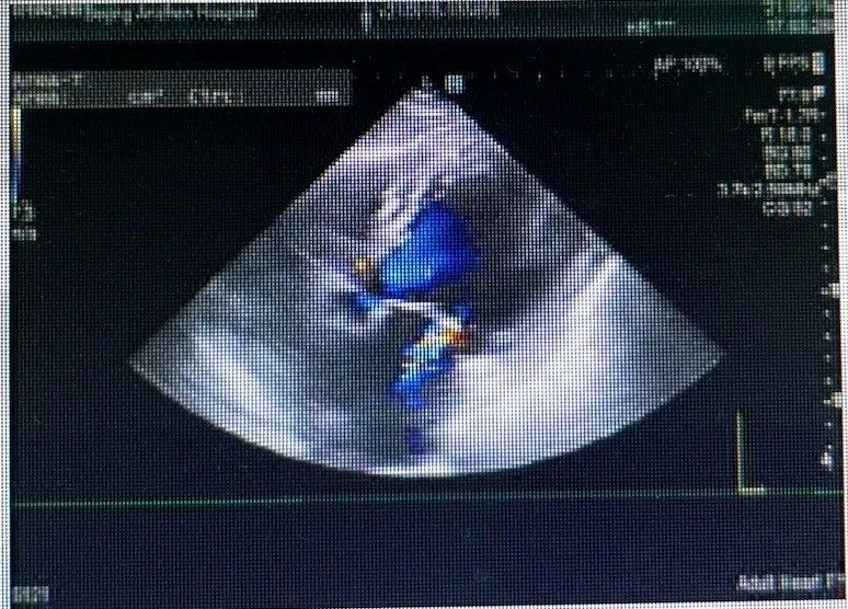 主动脉瓣评估:左心增大,左心功能减低,二尖瓣反流(重度)、三尖瓣反流(轻度),肺动脉高压(轻度)并少许心包积液