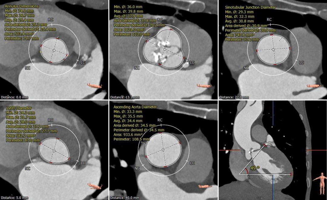 瓣环平均径22.2mm,瓦氏窦、STJ、升主内径略小,非横位心