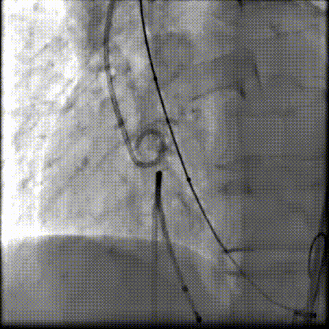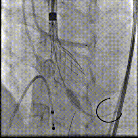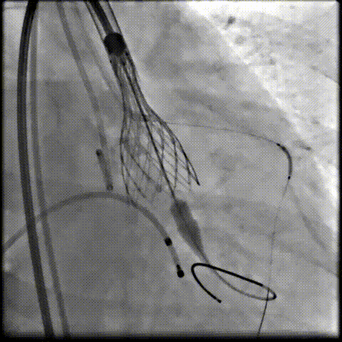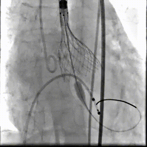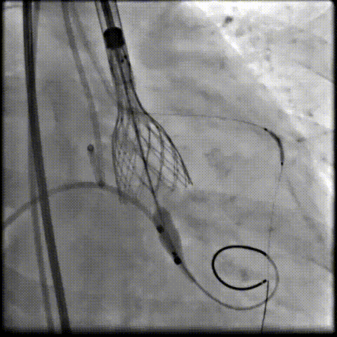 该病例为三窦式,R-N间钙化融合,L-N瓣叶粘连,仅L-R间存在相对灵活的瓣叶开口,对释放和锚定提出挑战。