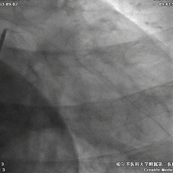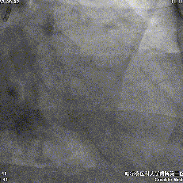 专家考虑血管远端病变狭窄严重,优先使用2.0*15mm球囊对远端病变进行扩张处理,扩张后造影可见狭窄程度有所改善(图3)。