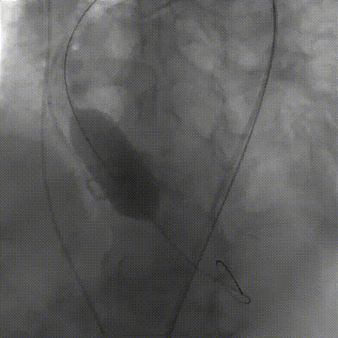 初次释放,无冠窦畸形猪尾难以到达窦底,定位带来挑战;释放至工作位,瓣膜(AV29)位置偏低