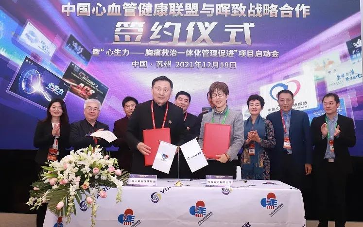 2021年12月18日,中国心血管健康联盟与晖致医药有限公司战略合作签约仪式暨“心生力-胸痛救治一体化管理促进项目”启动会在苏州国际博览中心成功举办。