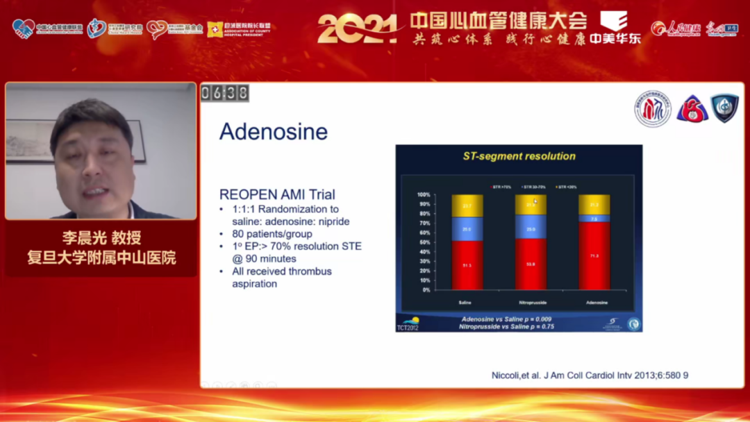 霍勇教授在致辞中表示,我国PCI治疗例数已过百万例,而PCI术中无复流/慢血流的发生,极大地影响了患者的预后。如何在早期识别出无复流/慢血流的发生,并加以预防,是控制疾病发展,改善患者预后的关键。然而,在我国临床实践中,针对无复流/慢血流发生的早期识别、预防及治疗,并没有规范的管理方式。腺苷在PCI术中应用,能够显著防治无复流,保护心肌细胞,有效改善心肌灌注损伤,减少心肌梗死面积。可以说,腺苷的应用打开了PCI血流管理的新局面。