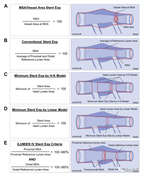 本研究纳入了ADAPT-DES研究中可供最终分析的于IVUS指导下行PCI治疗的冠状动脉病变。关注的支架膨胀指数包括:MSA、MSA/MSA部位血管面积、常规支架膨胀指数(MSA/近端和远端参考管腔面积的平均值),使用Huo-Kassab或血管变细的线性模型求得的最小支架膨胀,支架不对称指数(全支架内的最小/最大支架直径),支架偏心度(单一横截面的最小/最大支架直径),IVUS-XPL(IVUS引导对Xience支架在长病变中预后的影响)评分,ULTIMATE(IVUS引导DES植入任意患者的冠状动脉病变)评分,和ILUMIEN IV评分。研究者评估了上述指标与2年内临床驱动的靶病变血管重建(TLR)或明确的支架内血栓形成的相关性。