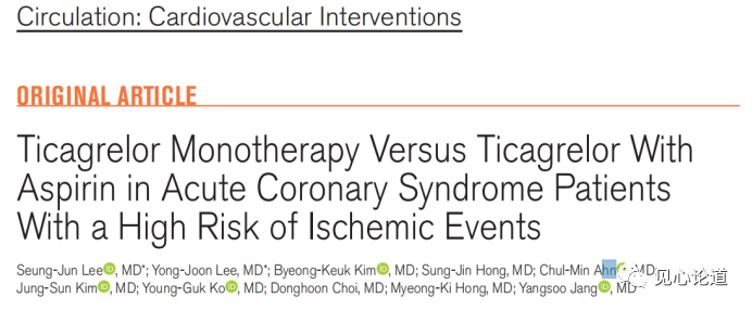 健心知著|对比替格瑞洛单药治疗与替格瑞洛联合阿司匹林治疗对具有高缺血风险的急性冠脉综合征患者的影响