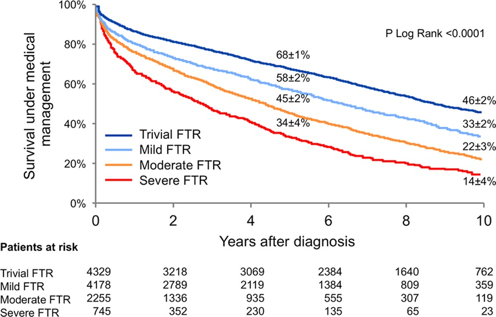 图一、死亡风险随着三尖瓣反流严重程度增加而增加