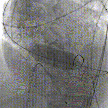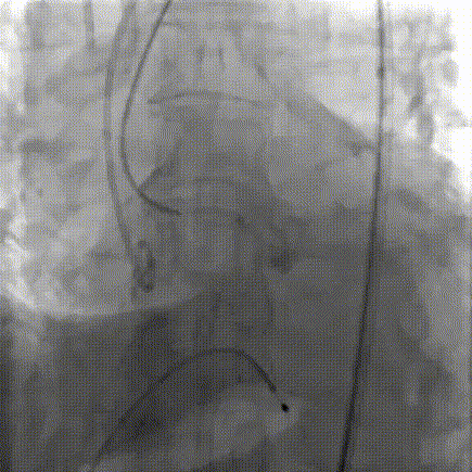 4. 留置猪尾于左室,行左冠造影并进行介入治疗;