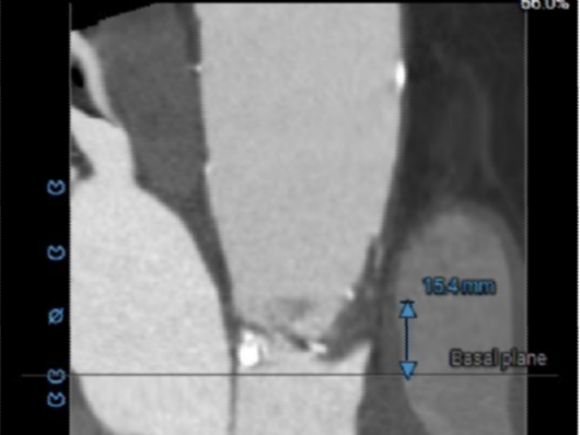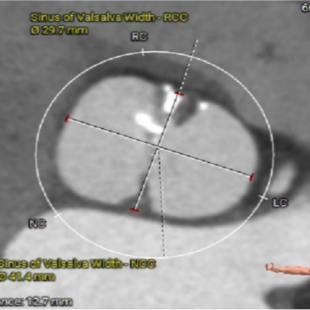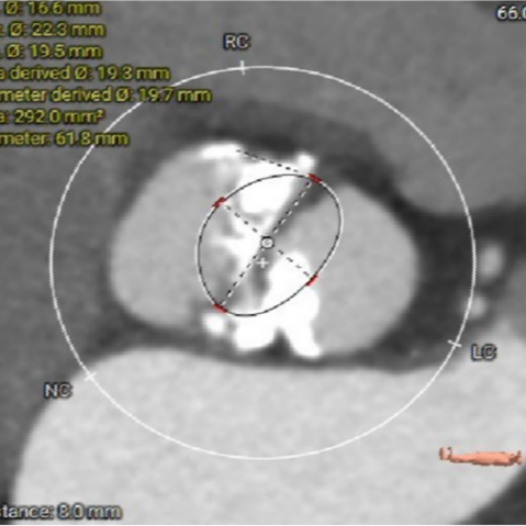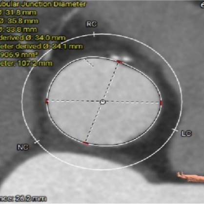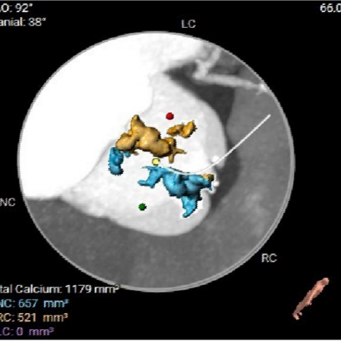 · 冠脉开口高度可,右冠纤细,冠脉未见明显钙化,结合瓦氏窦及STJ尺寸预估,冠脉风险适中,建议术中密切关注左冠灌注情况。