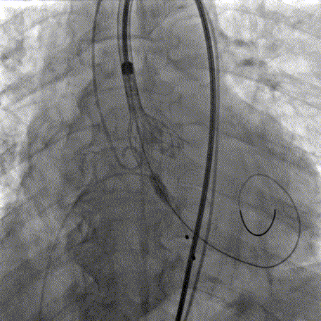 · 水平夹角51度,非横位心,主动脉弓宽度、角度尚可,弓部存在散在钙化,预估输送器过弓顺利,跨瓣难度增高,必要时采用Snare辅助。