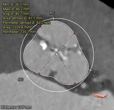 2.主动脉瓣瓣环周长100.1mm,平均周长径31.9mm。