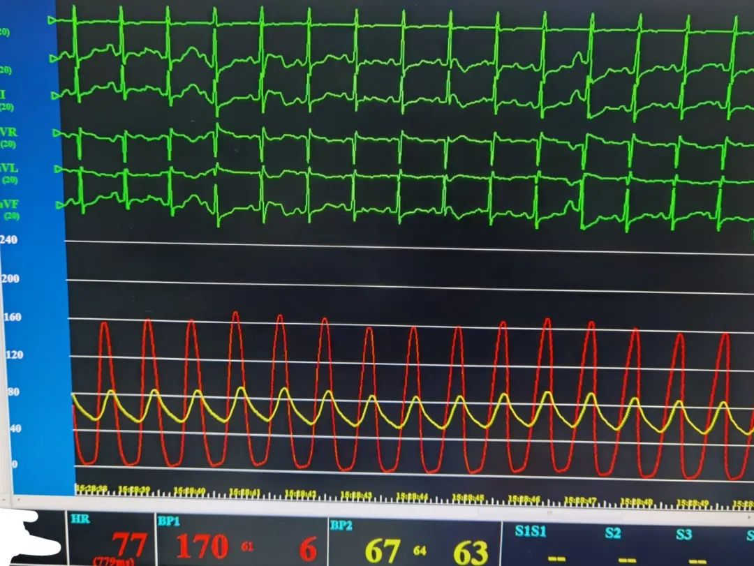 主诉:晕厥三次,黑矇三个月。入院前3月,患者坐车后出现晕厥,伴意识障碍,持续时间不详(患者自诉当时晕倒后,由旁人掐人中后苏醒),此次发病后,患者感活动后呼吸困难,并出现晕厥2次,持续1、2分钟,有意识丧失,未摔倒在地,并伴有间断黑矇、头昏、乏力,不伴胸痛、喘息、夜间高枕卧位。