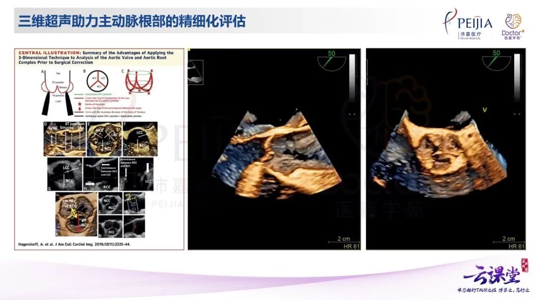通过对瓣环、瓣叶、形态、钙化与纤维化程度等进行主动脉根部解剖的评估,确定锚定区域及锚定力;