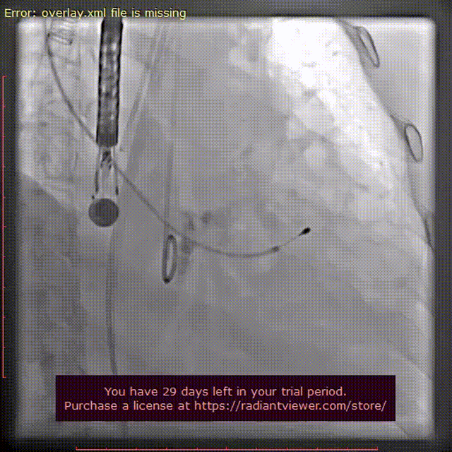 完全释放后位置良好,由于受重度钙化影响,瓣膜受到一定压缩,有轻-中瓣周漏,于是180次起搏下使用22mm球囊后扩,后扩完瓣膜形态良好。