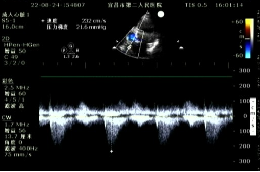 5、二尖瓣反流(轻度),三尖瓣反流(轻度),肺高压(轻度)。