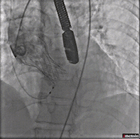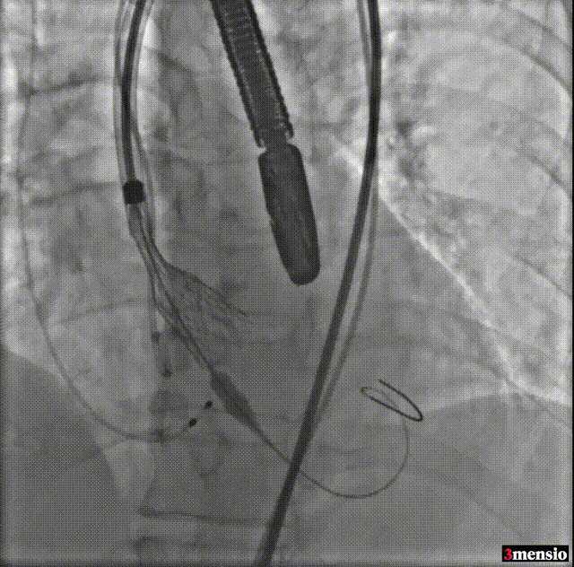 由于该病例瓣上限制较重,手术团队讨论决定使用沛嘉20mm球囊后扩处理: