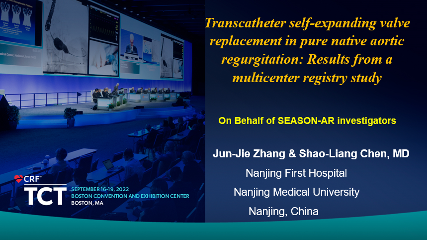 美国,波士顿——2022年9月18日,南京市第一医院副院长、心内科主任陈绍良教授在2022年美国经导管心血管治疗学术会议(TCT 2022)期间,重磅发布SEASON-AR注册研究成果,其结果表明,采用自膨式经导管主动脉瓣膜(自膨瓣)行经股动脉TAVR,可作为治疗外科高危的重度单纯主动脉瓣关闭不全(主闭)患者的一种安全有效的方式。