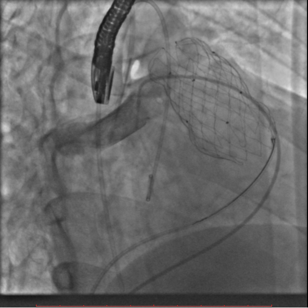 患者为18岁男孩,在其11月龄时行法洛四联症纠治术,今年7月我院随访心超时提示“法四术后:室水平未见残余分流,右室流出道未见异常,重度肺动脉瓣反流,右房室增大伴室间隔矛盾运动,TAPSE26mm,LVEF60%”。为防止患者右心功能障碍进一步恶化,葛均波院士团队决定为其行经导管肺动脉瓣置换术。手术由周达新主任、潘文志主任、张蕾医生、陈莎莎医生、张蔚菁医生、李伟医生、金琳医生、缪鹏医生共同完成。