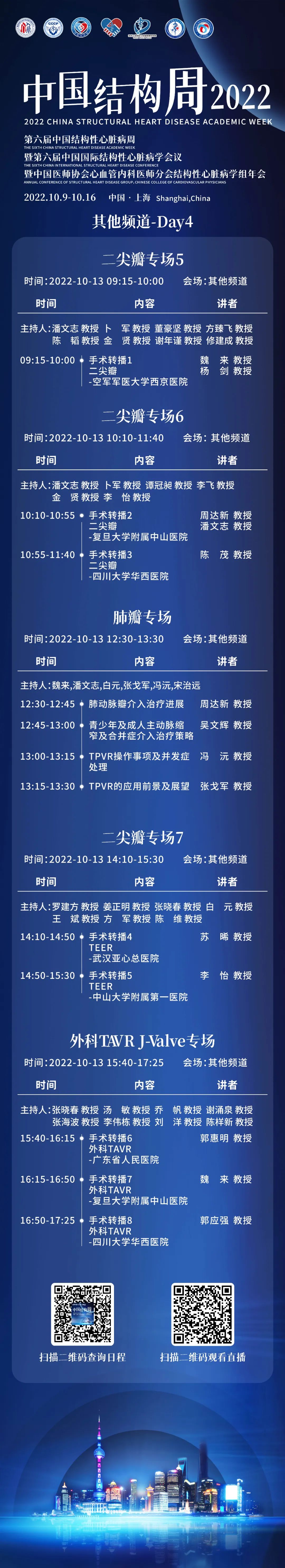 其他频道除了继续关注二尖瓣介入外,还将新增外科TAVR手术直播和肺动脉瓣专场汇报,届时来自广东省人民医院、复旦大学附属中山医院、四川大学华西医院三大国内知名中心的大血管外科团队将以J-valve为切入点带来精彩手术演示,国内资深肺动脉瓣介入专家也将围绕肺动脉瓣介入治疗进展、TPVR操作事项及并发症处理等讲题展开学术分享,共同展望肺动脉瓣介入治疗未来前景。