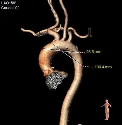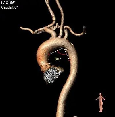 4.非横位心,主动脉弓角度及弓距可,预估术中输送器过弓、跨瓣顺利
