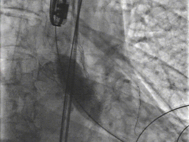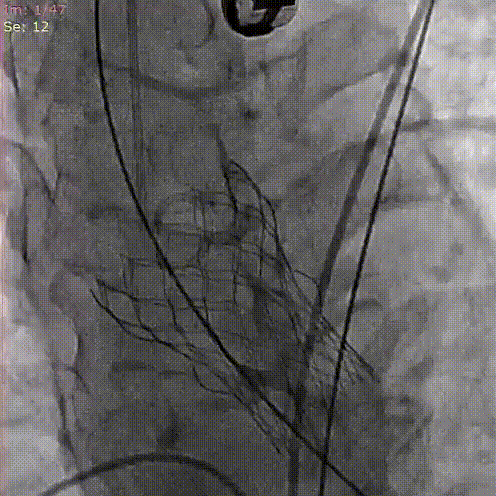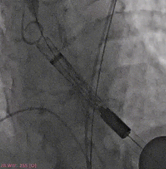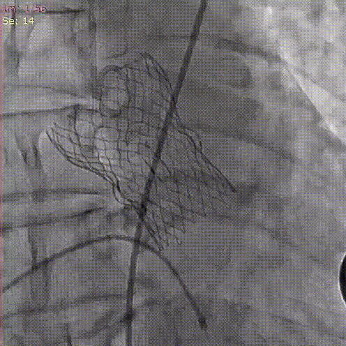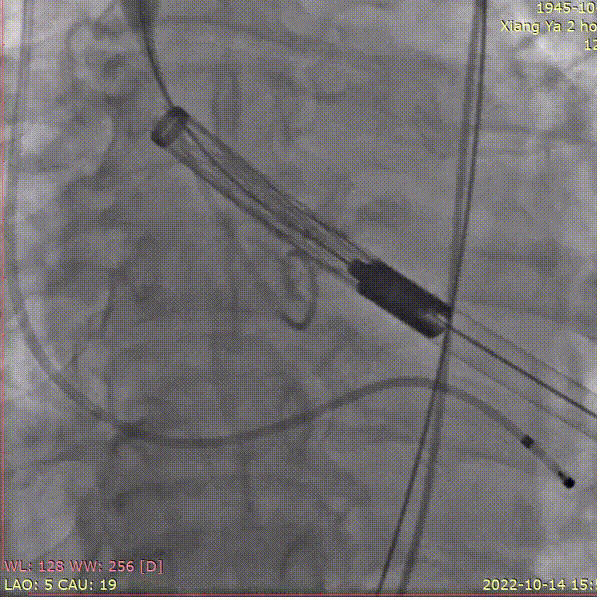 3.采取标准位释放的方式,植入Xcor™-26经导管主动脉瓣膜系统瓣膜,完成TAVR手术治疗。