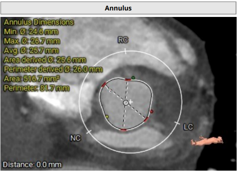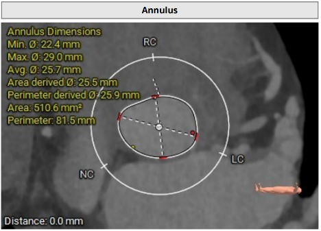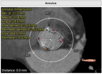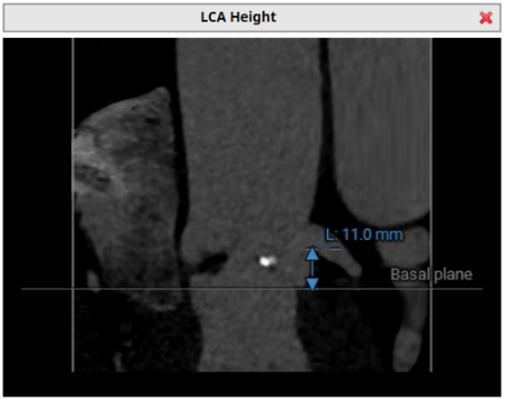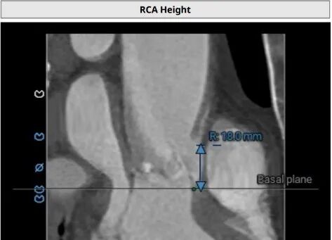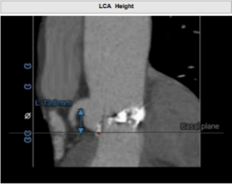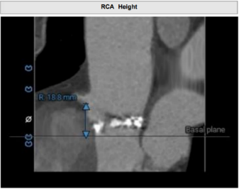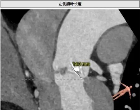 • 左冠开口高度约13.8mm,但考虑到瓣叶明显增厚、增长,仍有相当的冠脉阻塞风险。