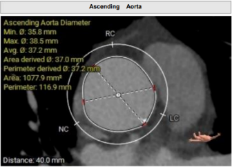 • 左冠高度8.3mm,左窦瓣叶长度10.2mm,瓣叶明显增厚,应注意术中冠脉闭塞风险。