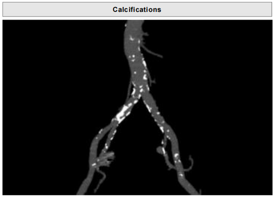 • 主动脉弓及腹主动脉、 髂总动脉可见明显钙化斑块,经股入路难度高;