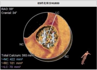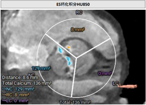 • 瓣叶钙化分布不均匀,右冠及无冠瓣叶可见明显钙化,瓣膜释放过程中存在移位风险。