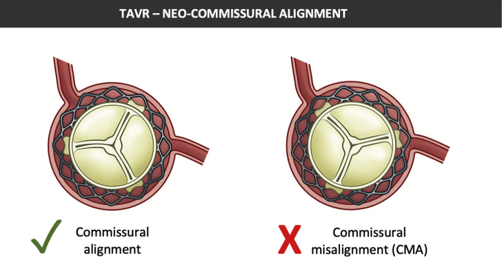 近期TAVR领域的相关研究提示,若在释放人工支架瓣膜时使人工瓣叶交界与原生主动脉瓣叶交界贴合,将有助于避免未行交界贴合引起的对于未来PCI操作的可能带来的不利影响(图2)。