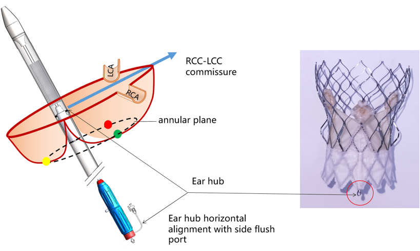 三叶瓣:主动进行瓣叶交界对齐,避免介入瓣膜假体瓣叶交界挡住冠脉开口;常规通过术前规划,提供左右窦重合的投照角度将瓣膜假体交界与原生左右窦交界对齐。