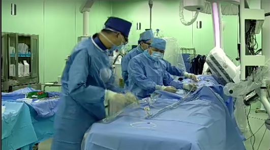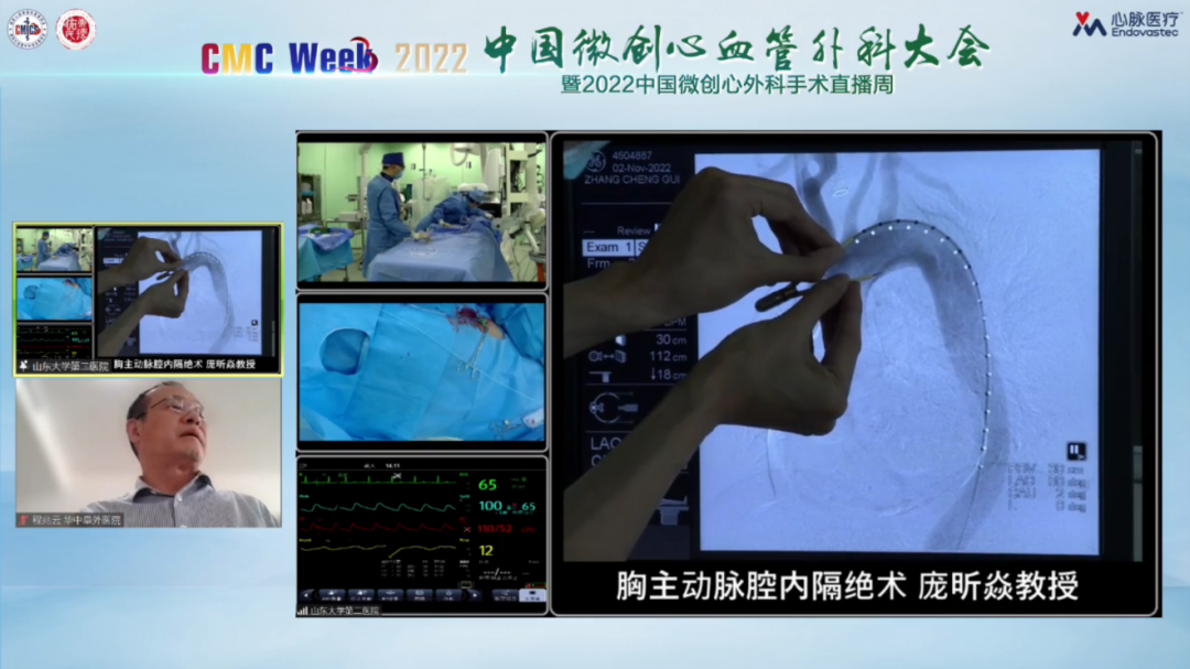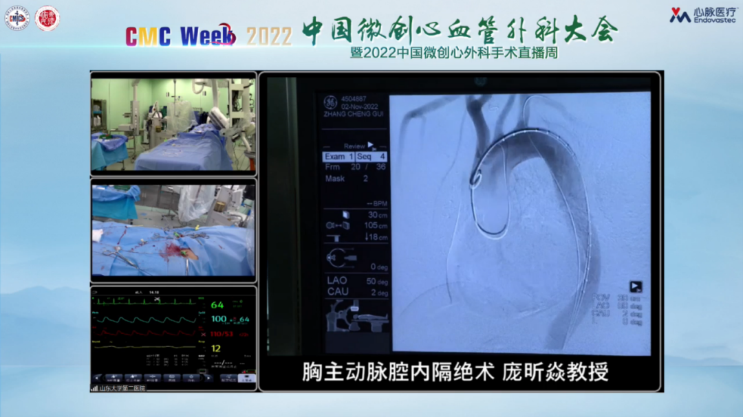 下午手术第二场由山东大学第二医院庞昕焱教授直播胸主动脉腔内隔绝术。