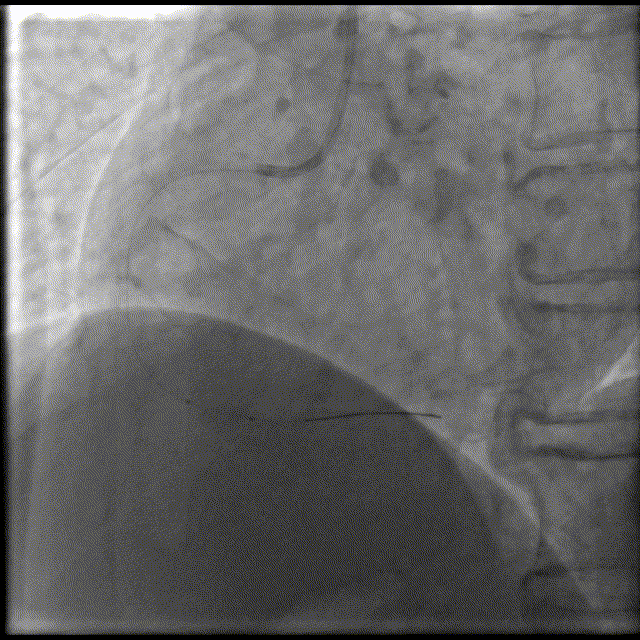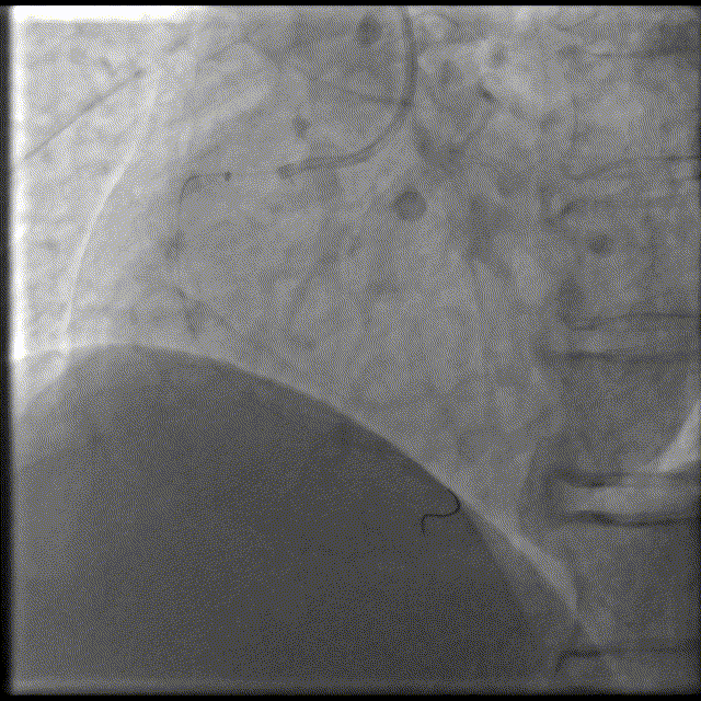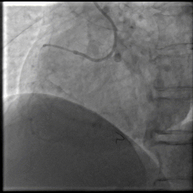 Telescope™导引延长导管辅助下,BAT技术,导引延长导管深达第二转折处,2.75x28mm支架顺利到位,12atm释放。