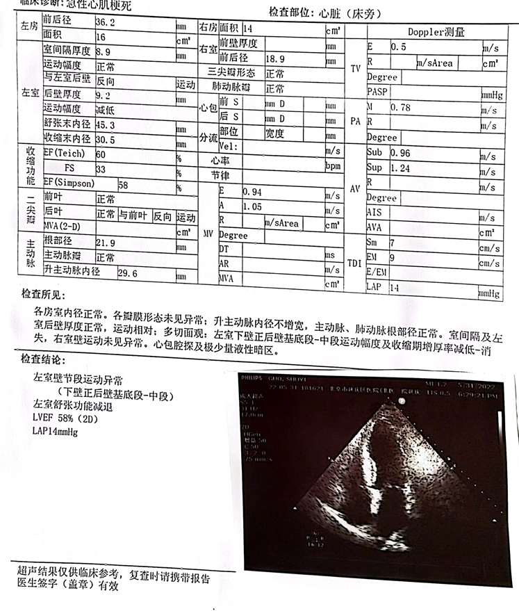 冠状动脉粥样硬化性心脏病,急性下壁正后壁心肌梗死,心功能I级(Killip's 分级)