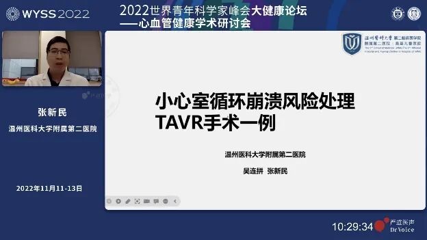 在11月13日第三日的CASE专场,各位结构性心脏病介入专家为我们带来了许多精彩病例。来自首都医科大学附属安贞医院的姚晶医师向我们分享了主动脉瓣反流TAVR治疗——AURORA研究;来自复旦大学附属中山医院的张蕾医师为我们带来了TAVR瓣周漏的防治及病例分享;来自浙江大学医学院附属第二医院的王力涵医师分享了一例高危伴低流速低压差患者的TAVR手术;来自浙江大学医学院附属邵逸夫医院的俞飞成医师分享了FMR TEER一例;来自宁波李惠利医院的林玉平医师分享了一例重度主动脉瓣狭窄的TAVR治疗+左冠烟囱支架保护;来自浙江大学医学院附属第一医院的周逸蒋医师分享了Type 0型二叶瓣合并扩张型心肌病TAVR一例;来自温州医科大学附属第二医院的张新民医师分享了小心室循环崩溃风险处理TAVR手术一例;来自宁波市第一医院的林少沂医师分享了风湿性主动脉瓣狭窄TAVR两例;来自温州医科大学附属第一医院的陈长曦医师分享了极低EF TAVR两例;来自浙江省台州医院的程颖医师分享了TAVR术中AVB一例;来自湖州市中心医院的张栗医师分享了出血高危患者TAVR一例。线上各位参会医师讨论热烈、相互交流、共同提高。