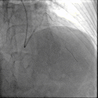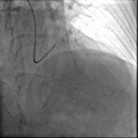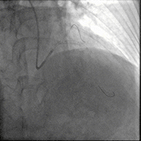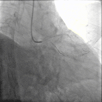 于前降支中段近段口串联2.5mm×18mm、3.0mm×18mm DES。