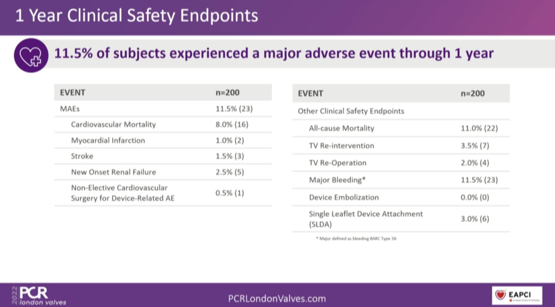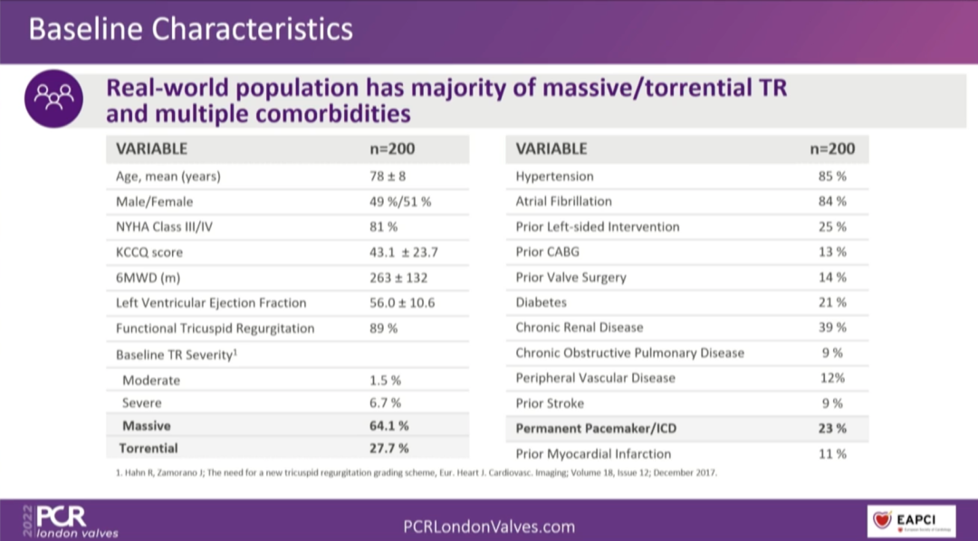 2022年11月27日,PCR London Valves 2022召开期间,Philipp Lurz教授公布了bRIGHT真实世界研究中,通过TriClip™和TriClip™ G4系统治疗三尖瓣反流(TR)前200例患者的基线情况和1年随访结果。