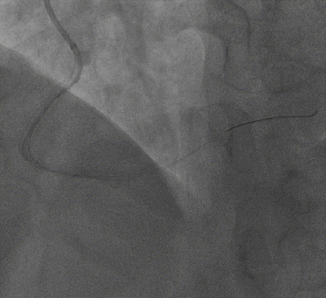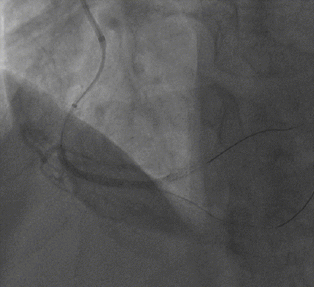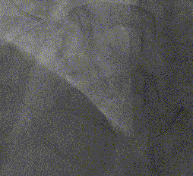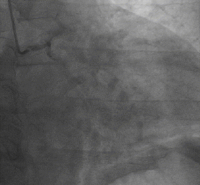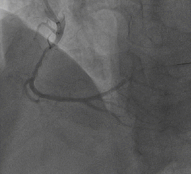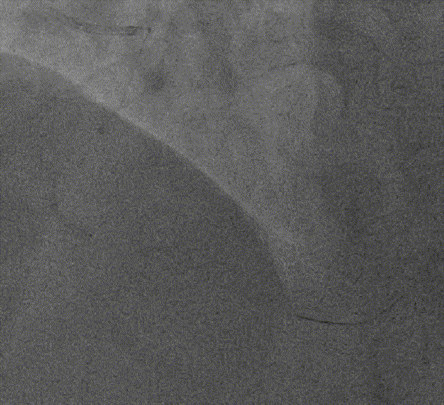 RCA开口畸形,第一转折长段不规则狭窄伴钙化最重约70%,自第二转折次全闭塞